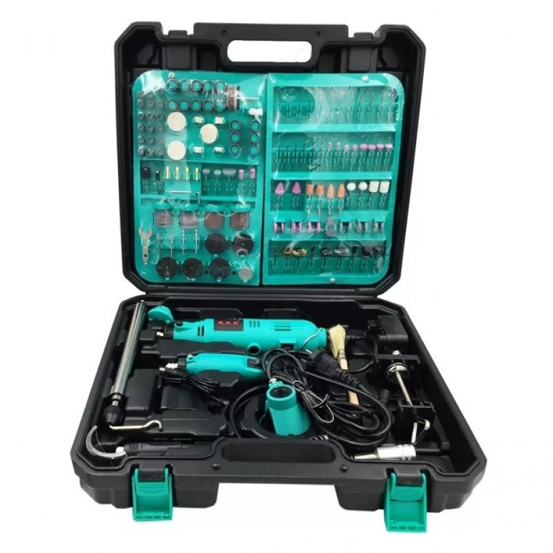 Гравер – многофункциональный инструмент. Предназначен шлифовать, резать, гравировать, сверлить и многое другое. Небольшой вес и маленькие размеры – главное преимущество данной шлифмашинки. Не смотря на свои размеры, гравер вместил в себе довольно мощный электромотор который способен поддерживать 10 000-28 000об/мин, что гарантирует точную работу с инструментом. Гравер комплектуется пластиковым кейсом, набором разных насадок в количестве 236 шт, гибким валом, телескопическим штативом и двумя граверами ( большим и маленьким 12V )