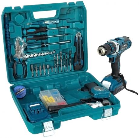 Набор аккумуляторных инструментов 4 в 1 в кейсе Болгарка + Шуруповерт +Гайковерт+перфоратор DOMOTEC