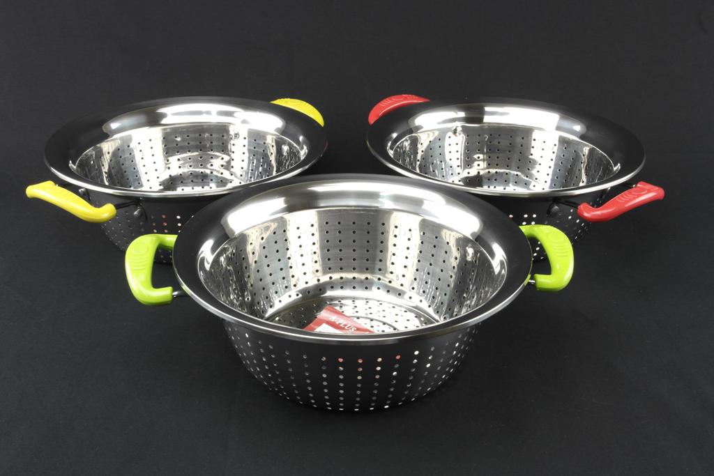 Дуршлаг изготовлен из высококачественой нержавеющей стали, что обеспечивает данному товару надежность и долговечность в использовании. Наличие двух ручек, которые покрыты высококачественным пластиком, гарантирует безопасное пользование этой незаменимой посуды на кухне. Дуршлаг удобно использовать как в горячей, так и холодной воде (отцедить жидкость, процедить и высушить), легко моется и имеет презентабельный вид. Преимуществом является небольшой вес, рациональный размер. Устойчив в использовании, так как имеет плоское дно. Наличие цветных ручек создает настроение на любой кухне.