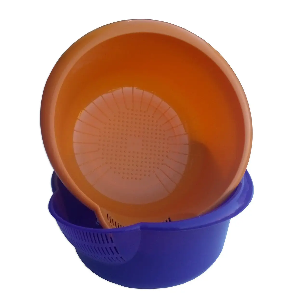 Многофункциональная мисочка-ковш-дуршлаг для промывки продуктов. Миска имеет круглую форму и закругленный бортики за которые удобно браться руками. На мисочке есть носик для удобства слива лишней жидкости, но кроме носика для слива жидкости есть, также, и отверстия, расположенные чуть ниже него. Мисочка имеет более широкий диаметр сверху - 25 см (без носика, вместе с ним 27 см) и более узкий снизу - 20 см, это нужно для того, чтобы промывая, например, рис было удобно сливать воду.