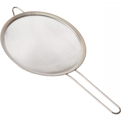 Сито з діаметром 20 см виготовлене з харчової нержавіючої сталі. Має широку облямівку та ручку для зручності. Оснащене кільцем для підвішування на кухонних аксесуарах.