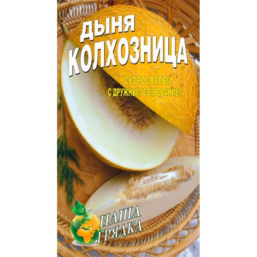 Дыня Колхозница Среднеспелый сорт дыни, урожайный. Плоды округлые гладкие, сетка не полная, крупноячеистая, рисунка нет. Фон темно-зеленый или желто-оранжевый. Мякоть тонкая, белая, вязкая, плотная, очень сладкая, сочная, вкусная.