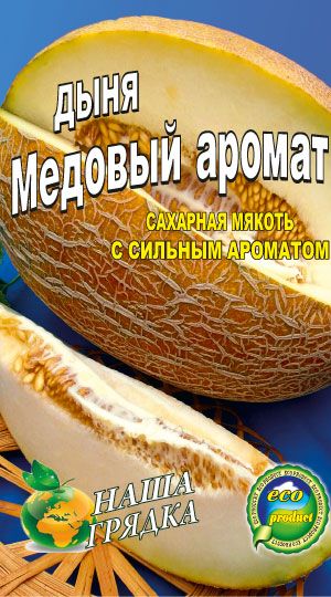 Дыня Медовый аромат Раннеспелый сорт дыни. Созревание наступает на 80-85 день. Ароматнейшие плоды, массой 2-4 кг с очень вкусной и нежной мякотью. Помимо этих уникальных качеств, обладает следующими ценностями: быстро растет, не поражается болезнями