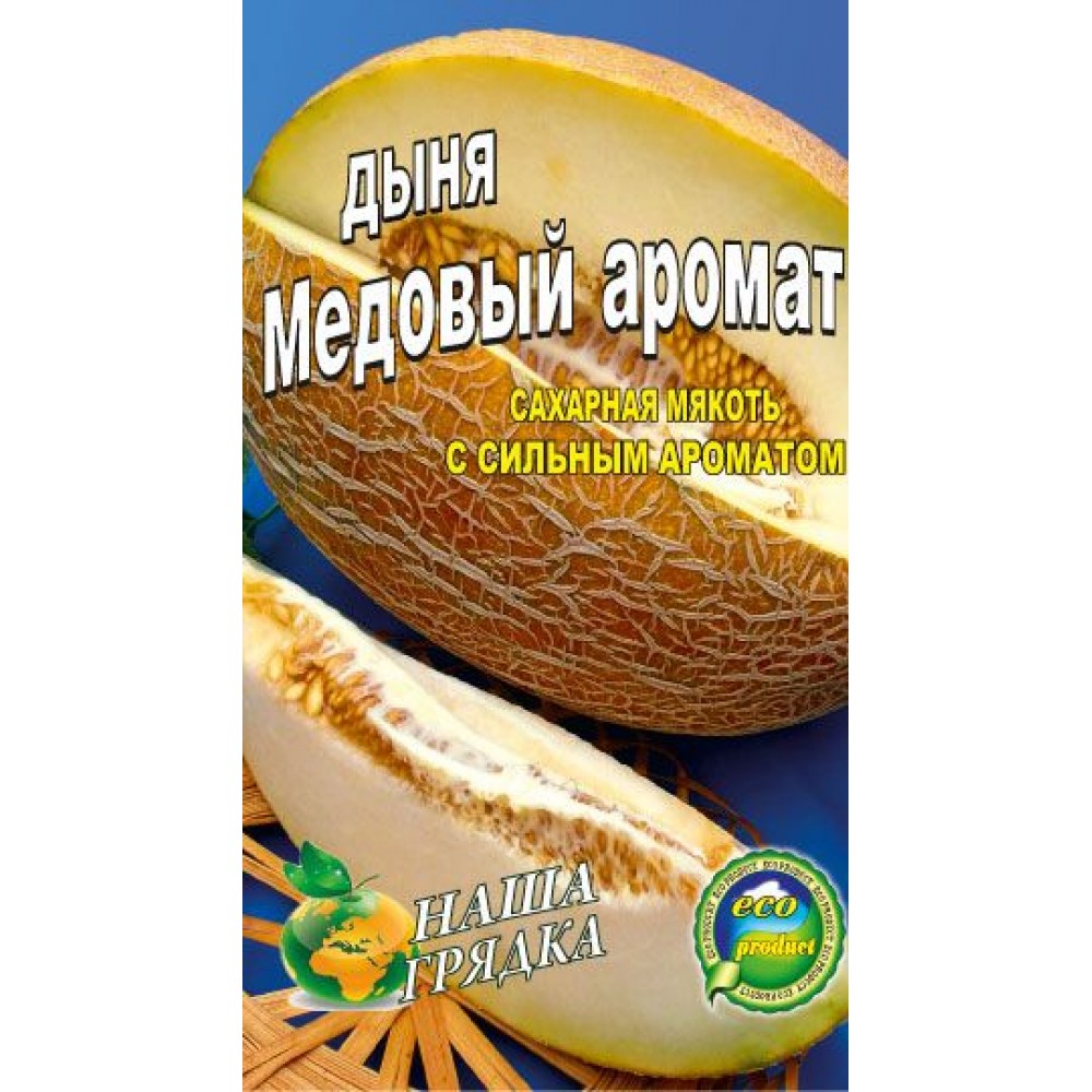 Дыня Медовый аромат Раннеспелый сорт дыни. Созревание наступает на 80-85 день. Ароматнейшие плоды, массой 2-4 кг с очень вкусной и нежной мякотью. Помимо этих уникальных качеств, обладает следующими ценностями: быстро растет, не поражается болезнями