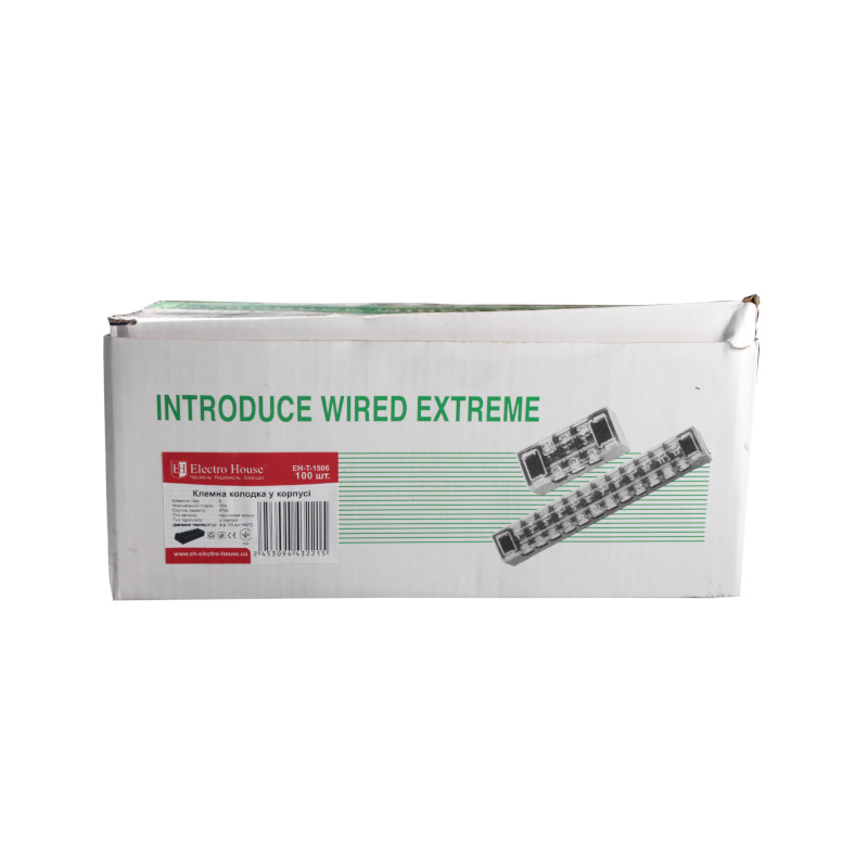 Клеммная колодка в корпусе EH-T-1506 от компании "ElectroHouse" предназначена для удобства монтажа электрических проводов в цепях управления, сигнализации, освещения и т.д.Клеммная колодка представляет собой диэлектрическое основание из негорючего пластика, на котором установлены контактные планки, надёжно изолированные друг от друга. Планки изготавливаются из лужёной латуни. Контактные планки зажимов рассчитаны на пропускание больших токов в сетях переменного тока частотой 50 Гц. Эта модель клеммной колодки в корпусе имеет шесть клеммных пары с винтовым зажимом провода, ее номинальный ток 15А. Позволяет соединить медные и алюминиевые провода.Так же эта модель отличается высокой надежностью, долговечностью и имеет широкий температурный диапазон - она способна работать при температуре от -10 до +80 градусов цельсия. Соответствует мировым и европейским стандартам качества.Прозрачная крышка не только служит защитой, но и позволяет визуально контролировать состояние контактов, что очень удобно. Винтовой зажим позволяет получить надежный контакт без использования специального оборудования (паяльник, пресс-клещи и т.д.).Некоторые типы клеммных зажимов являются одноразовыми, как например пружинные (самозажимные), но винтовой зажим позволяет использовать это устройство многократно. Таким образом эта модель является не только надежной, но еще и экономичной. Выполнить монтаж проводов в это изделие просто и быстро.