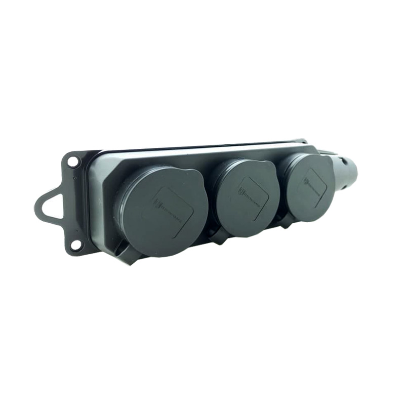 Колодка с заземлением и крышкой на 3 гнезда Каучук применяется в производственных или иных сферах где условия эксплуатации можно назвать агрессивными. Каждая из розеток оборудована крышкой, что исключает при отсутствии вилки потребителя попадание посторонних предметов в токоведущие части. Также влагозащищенная, брызги воды, попадающие на конструкцию под любым углом, не причиняют опасных последствий. Все зажимы, клеммы, винты надежно фиксируют электропровод. Безопасна в использовании. Выполнена в черном цвете. Применяют в помещениях автомобильных моек, мастерских, стройках, производственных цехах. Устойчива к большим нагрузкам и перепадам сети.