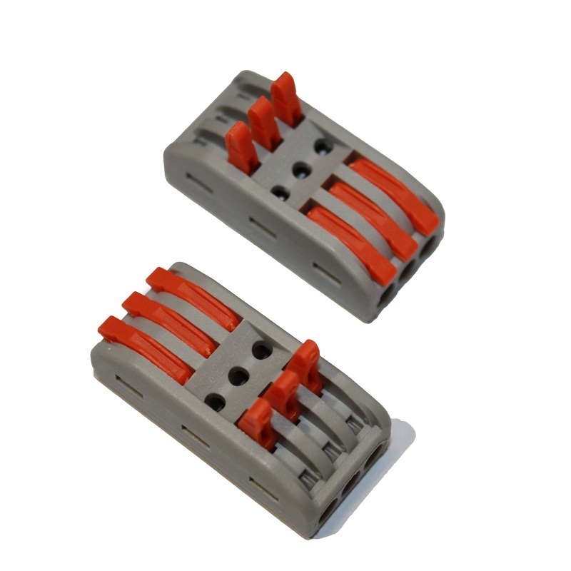 Благодаря простоте установки, для подключения проводов не требуется использовать дополнительные инструменты. Достаточно вставить токопроводящие провода с обеих сторон коннектора и нажать на три удобных рычага, чтобы осуществить надежное самозажимное соединение. Это позволяет избежать традиционных методов, таких как пайка, упрощая процесс монтажа и сокращая время.