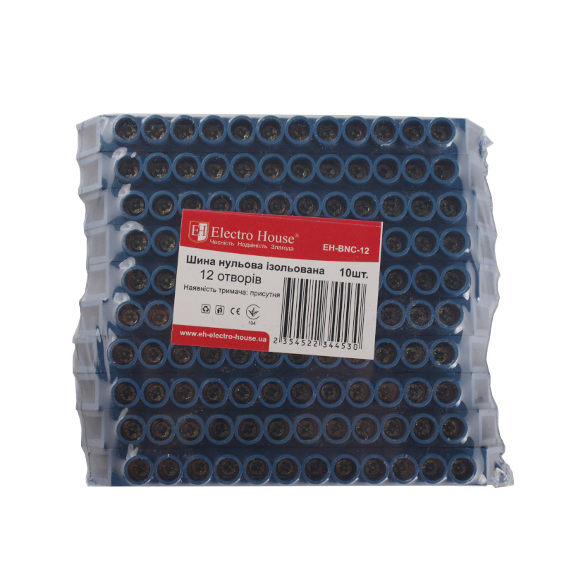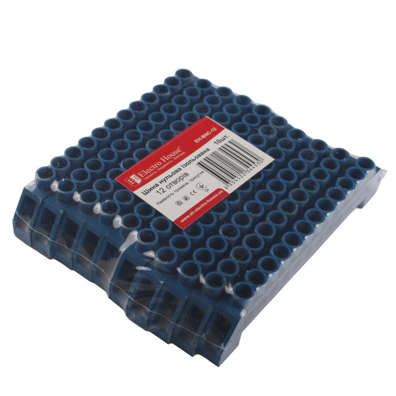 Шина нулевая изолированная 12 отверстий EH-BNC-12 от компании "Electro House" предназначена для электрического и механического соединения нулевых, защитных и фазных проводников. Отличается высоким качеством, надежностью и долговечностью. Соответствует мировым и европейским стандартам качества.На сегодняшний день просто невозможно представить сборку электрощита без применения подобных устройств. Конструктивно эта модель представляет собой токопроводящую жилу в изолирующем корпусе из самозатухающего пластика. Токопроводящая жила изготовлена из электротехнической латуни и содержит в себе отверстия с зажимными винтами для крепления в ней проводников (двенадцать кабельных выводов диаметром 5,5 мм). Ширина - 11 мм, длина - 129 мм). Номинальный ток для этой модели - 100А. Рабочая температура для этого изделия от -40 до 50оС при среднем значении относительной влажности не более 90. Для длительной и надежной эксплуатации этого изделия окружающий воздух не должен быть засорен парами солей, коррозионными или воспламеняющими газами. Для обеспечения качественного соединения, а также упрощения дальнейшего обслуживания, шина выполнена единым токопроводящим элементом. Сам корпус имеет два отверстия для винтового крепления на поверхность.Для правильного функционирования устройств дифференциальной защиты необходимо правильно произвести их подключение, а в распределительном щите разделить проводники N от PE. В случае металлического щита, это можно произвести только изолировав нулевой проводник от корпуса. Благодаря конструктивным особенностям, эта модель подойдет для выполнения такой задачи как нельзя лучше - поскольку она уже изолирована корпусом и не требует установки на изолятор. Ее монтаж прост, не занимает много времени и не требует дополнительного оборудования.