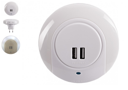 Светодиодный ночник Luxel NL-02W с двумя usb портами 5V/1A и встроенным датчиком света. Позволяет осуществлять зарядку сразу двух смартфонов. Имеет оригинальный дизайн, изготовлен из качественного пластика. Потребляемая мощность всего 1 Вт. Изделие имеет 2 запрограммированных режима работы. В первом режиме ночник светиться постоянно на максимальной яркости. Во втором режиме ночник выдает приглушенный свет