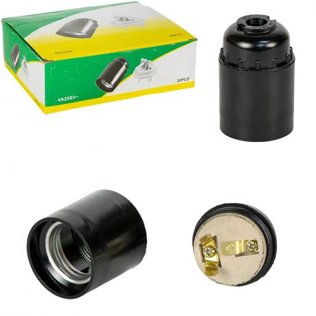 Патрон для лампочки з цоколем E27 призначений для надійного підключення освітлювальних приладів. Корпус виготовлений із термостійкого пластику, стійкого до нагрівання та механічних навантажень. Внутрішня керамічна вставка з металевими затискачами гарантує стабільний контакт і правильну роботу лампи. Підходить для люстр, стельових і настінних світильників, настільних ламп та інших освітлювальних конструкцій. В упаковці — 20 шт. Розмір упаковки — 19,5×16,5×6,5 см.