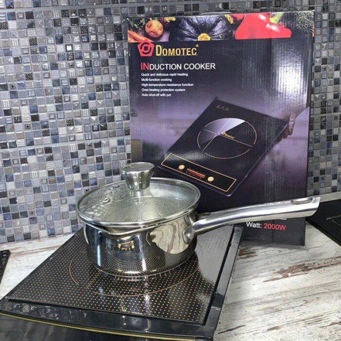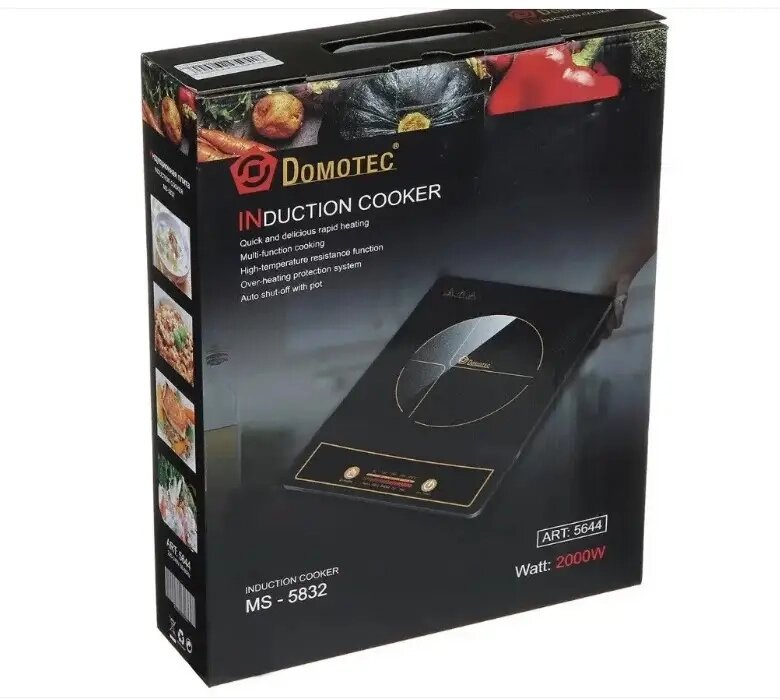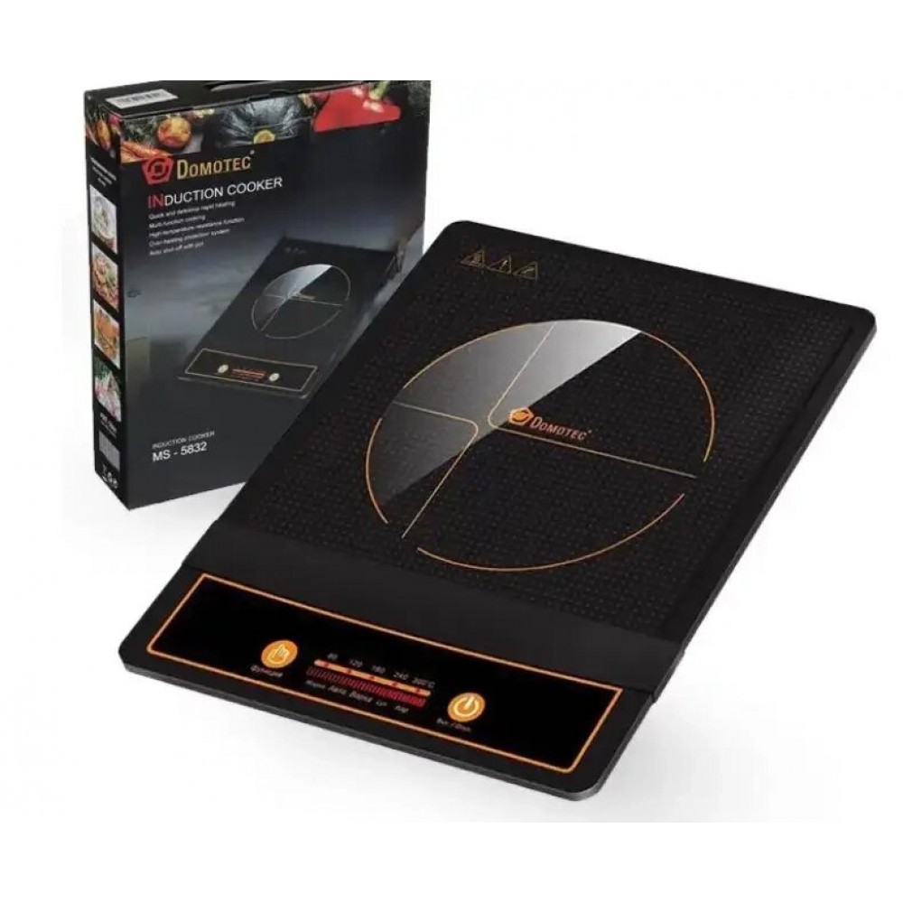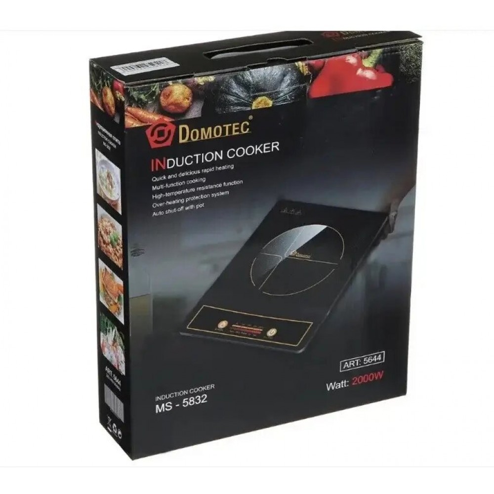 Индукционная плита Domotec MS-5832 — это кухонная электрическая плита, разогревающая металлическую посуду индуцированными вихревыми токами, создаваемыми высокочастотным магнитным полем. Плита DomotecMS-5832 имеет массу преимуществ перед газовыми и электрическими аналогами. она отличается экономичностью (существенная экономия электроэнергии и времени, за счет уменьшения потерь тепла), комфортом использования, безопасностью, практичностью и имеет непревзойденный дизайн. Для разогрева плиты требуется не более секунды, она начнет эффективно работать сразу же, как вы поставите на нее посуду. Индукционная плита Domotec MS-5832 занимает совсем немного места, благодаря чему ее всегда можно взять с собой в отпуск, на дачу и наслаждаться вкусной домашней едой. Большая керамическая поверхность позволяет размещать посуду большого диаметра, а также такая поверхность не привередлива в уходе, легко моется и очищается. Наличие семи режимов приготовления пищи делают индукционную плиту еще более удобной и функциональной, а функция авто отключения при отсутствии посуды делает ее еще и безопасной. Характеристики Domotec MS-5832: • 7 уровней мощности в диапазоне от 200Вт до 2000Вт; • 8 уровней температуры в диапазоне от 80 ° C до 300 ° C; • Мощность: 2000 Вт; • Питание: 220V, 50 Hz; • Стеклокерамическая поверхность; • Панель управления с большими кнопками и дисплеем; • Автоматическое обнаружение посуды; • Индикатор работы; • Таймер с сигналом выключения; • Автоматическое выключение; • 5 специально разработанных функций приготовления блюд: жарка, варка, суп, пар, авто; • Варочная поверхность: 250x250мм; • Диаметр днища кастрюль:12-20 см;