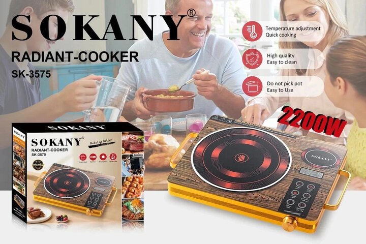 Плита индукционная сенсорное упр. крист.поверхность 2000W 28*36см (8 темп.реж,6 пр.)