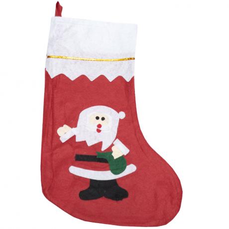 Новорічна шкарпетка для подарунків із фетру — стильна та святкова прикраса, що створює атмосферу затишку та казки. Розмір: висота 20 см, ширина 11 см, ширина підошви 14 см. Підходить для пакування солодощів, сувенірів або невеликих подарунків. Оснащена петелькою для підвішування на ялинку, камін чи стіну.
