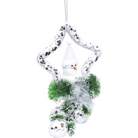 Декор "Снеговик с украшением" прикрасить новорічні свята та додасть святкового настрою. Має петельку для підвішування. Розмір: 25х40см. Розмір у розкладеному вигляді 25х93см