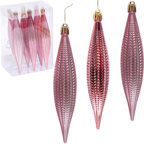 Цілісність товару необхідно перевіряти на пошті. Пластикові ялинкові прикраси. Розмір іграшки : 17*3,5см. Упаковані в пластикову коробочку по 6 штук. Колір: в коробочці один колір віддтінок галянцевий/матовий. Ціна вказана за набір 6шт.