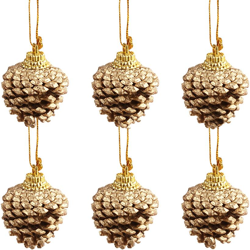 Набор елочных украшений "Шишки" 6шт. Материал : елочные шишки покрыты золотой краской . Размер игрушки: 6*3 см.