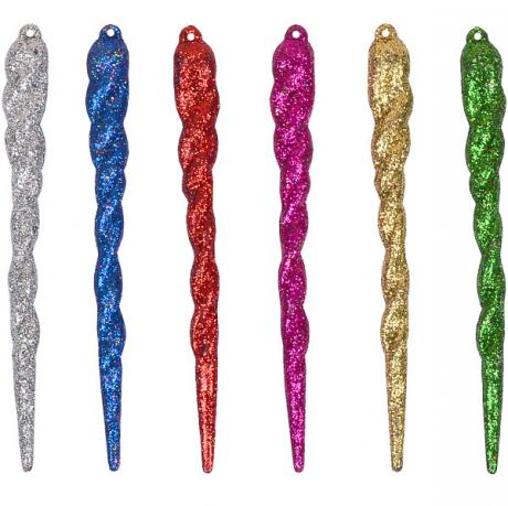 Набор - прикраса "Бурульки" 6шт. Колір мікс, матеріал пластик прикрашений глиттером. Упакований в індивідуальну євро упаковку. Довжина 12см. Ціна вказана за 1 упаковку.