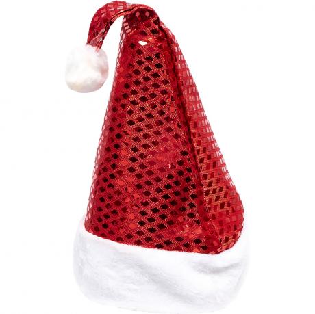 Шапка Діда Мороза червоного кольору з білою окантовкою. М'який матеріал забезпечує комфорт. Об'єм шапки становить 58 см, висота - 40 см.