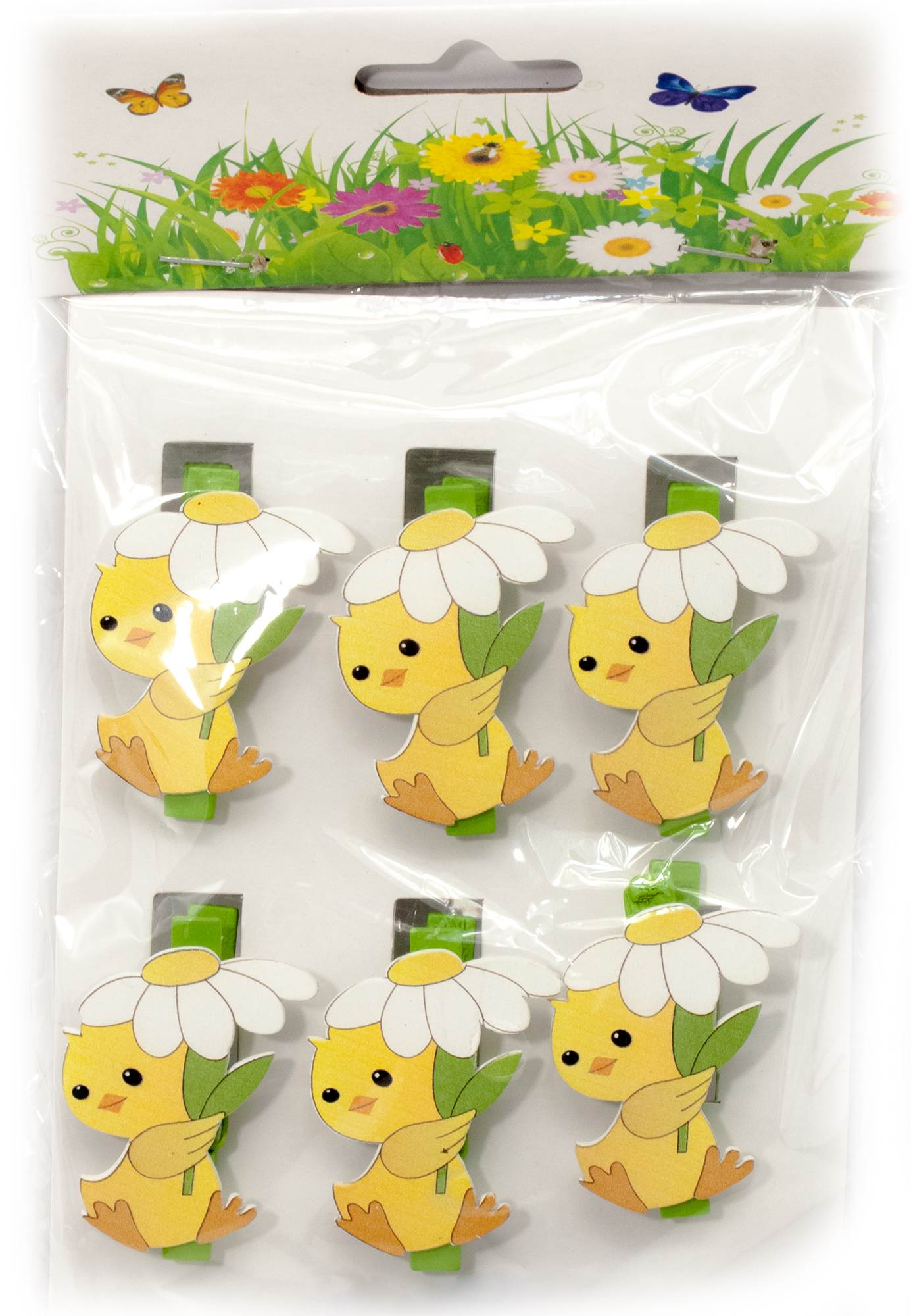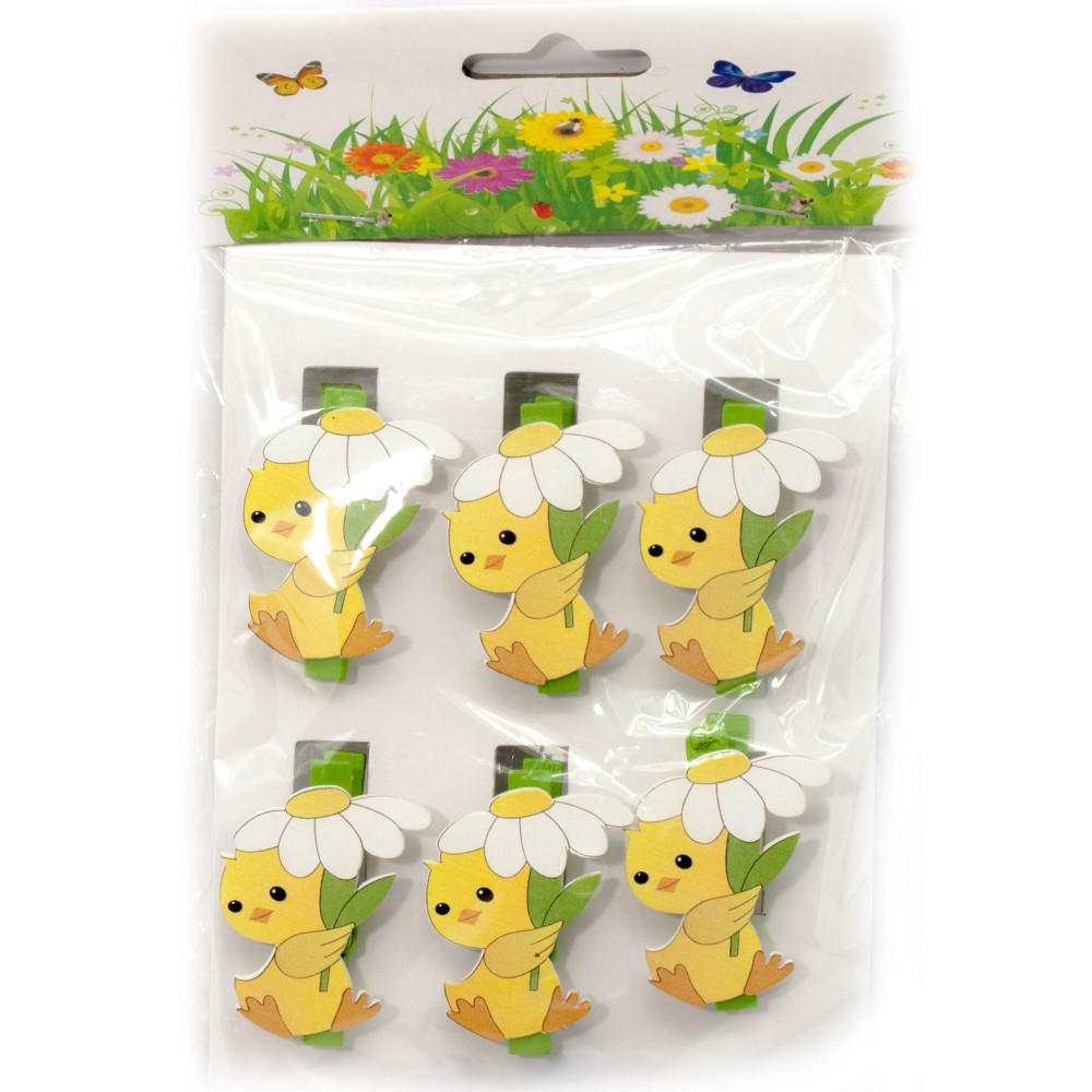 Украшалочки Цыпленок с Ромашкой прищепка дерево(н-р 6 шт) ЦЕНА ЗА НАБОР код 29772C