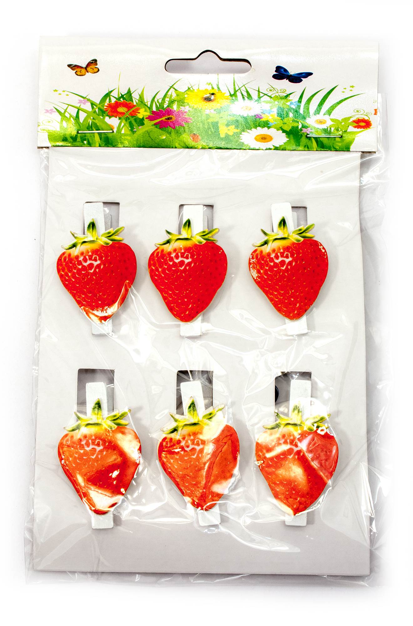 Украшалочки Клубника прищепка дерево(н-р 6 шт) ЦЕНА ЗА НАБОР код 29782A