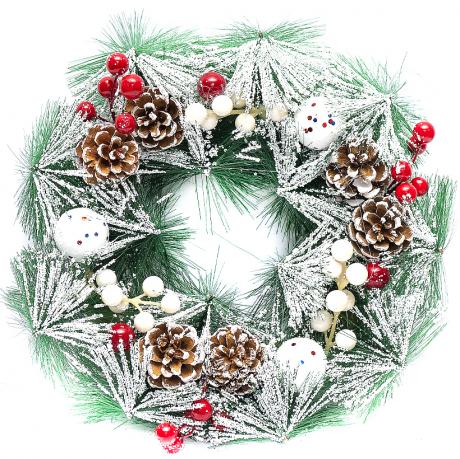 Новорічний вінок на каркасній основі є композицією, прикрашеною штучними ялиновими гілками та іграшками. Розмір: 30 см