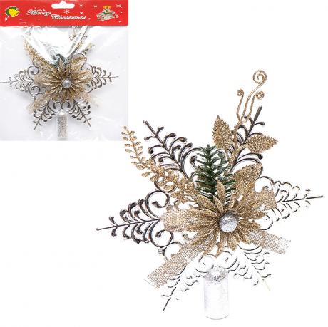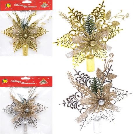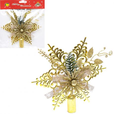 Верхівка являє собою блискучий виріб, що переливається, яким можна декорувати ялинку. Виготовлена із пластику. Розмір: 19,5*19,5см Ціна вказана за 1шт.