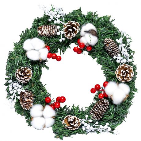 Новорічний вінок є композицією, прикрашеною штучними ялиновими гілками та іграшками. Діаметр 35 см