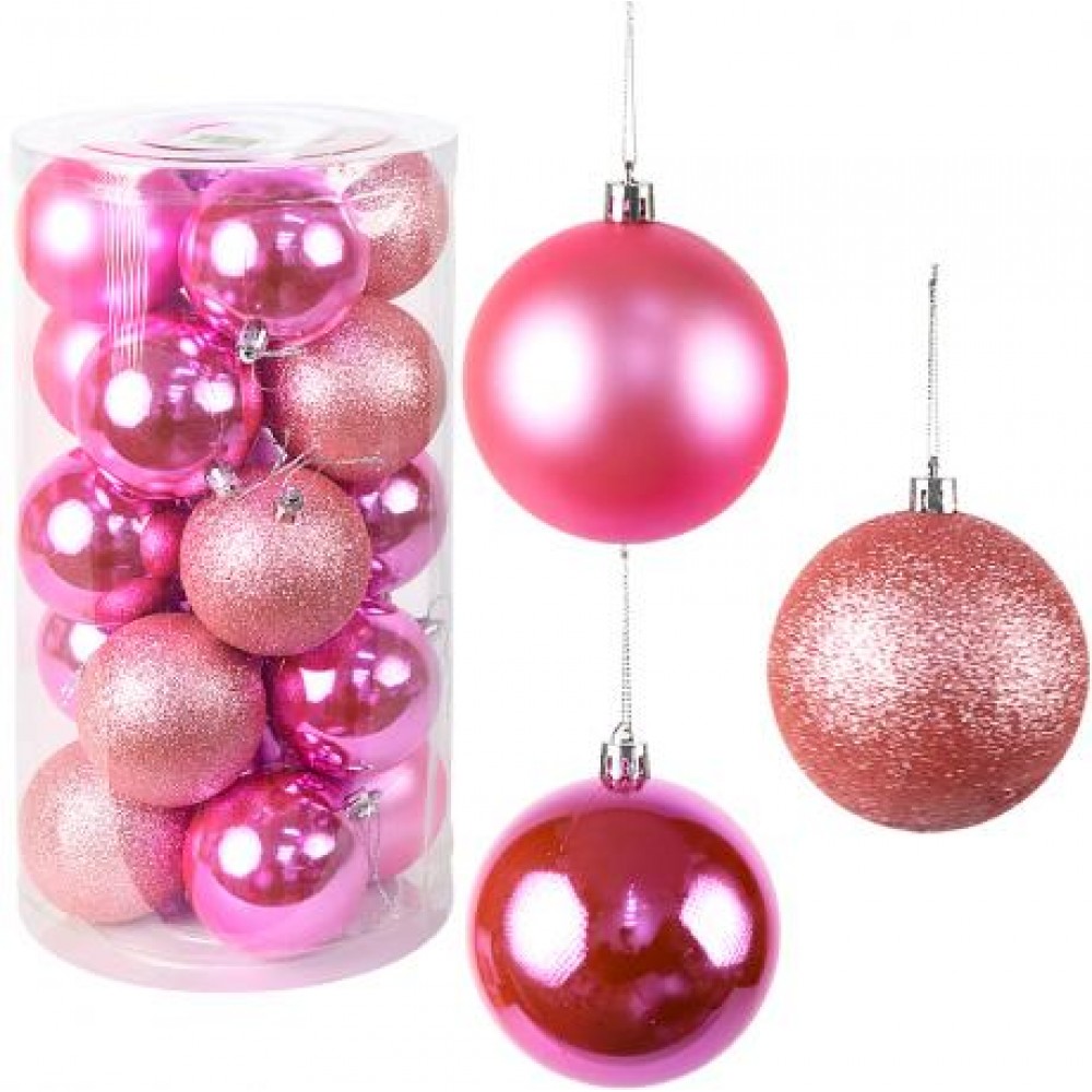 • Набір новорічних куль 20шт D6см Рожевий в тубусі YH-9262