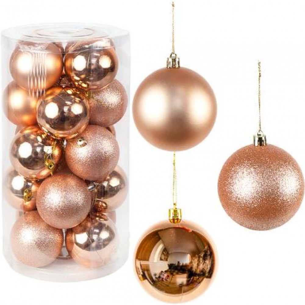• Набір новорічних куль 20шт D6см Рожеве Золото в тубусі YH-9262