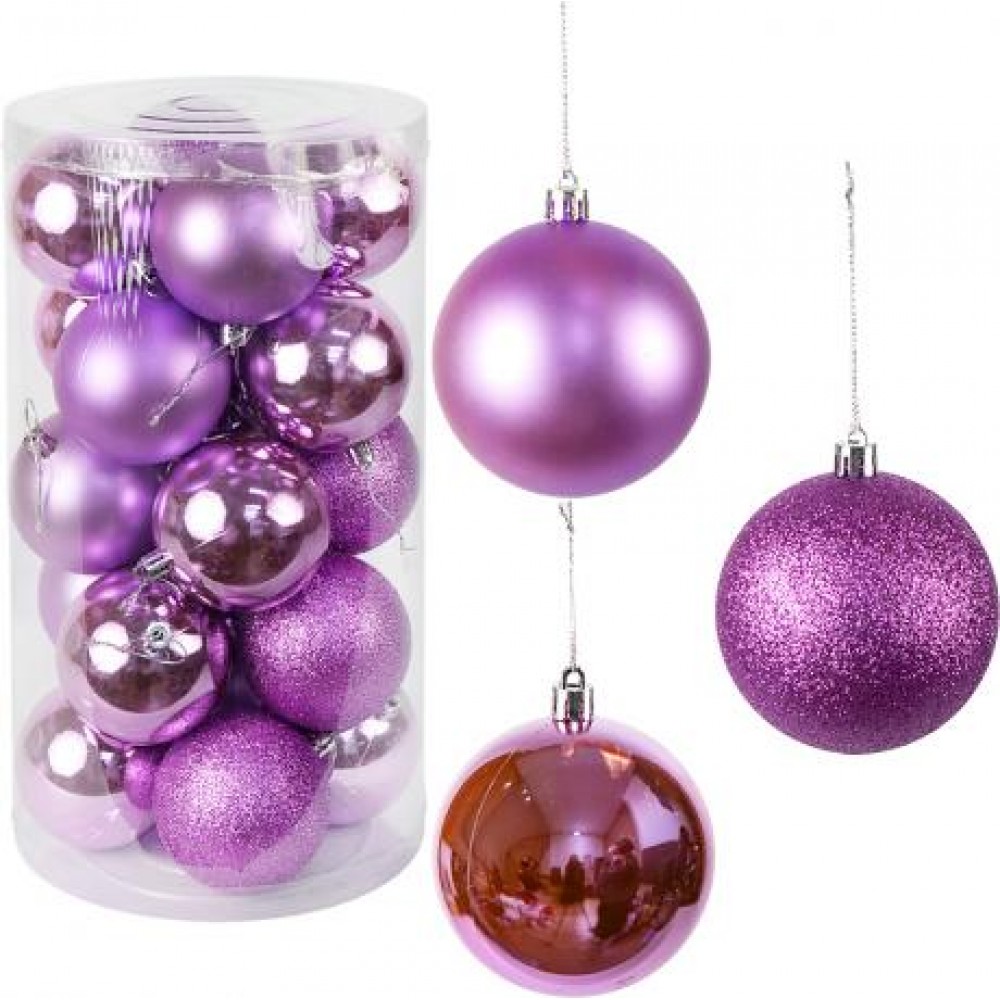 Набір новорічних куль 20шт D6см Фіолетовий у тубусі YH-9262