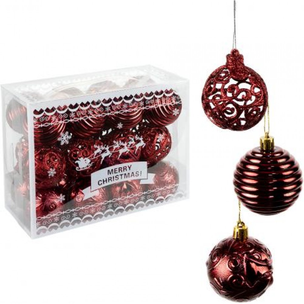 Набір новорічних пластикових куль — стильна прикраса для святкової ялинки. У комплекті 24 кулі діаметром 6 см: 8 ажурних, 8 рельєфних і 8 з декоративним візерунком. Усі кулі виконані в єдиному кольорі з блиском і фактурою, що створює ефект святкового сяйва. Упаковка з ручкою та написом “Merry Christmas!”, розміром 23×11,5×17,5 см — чудовий варіант для подарунка або охайного зберігання.