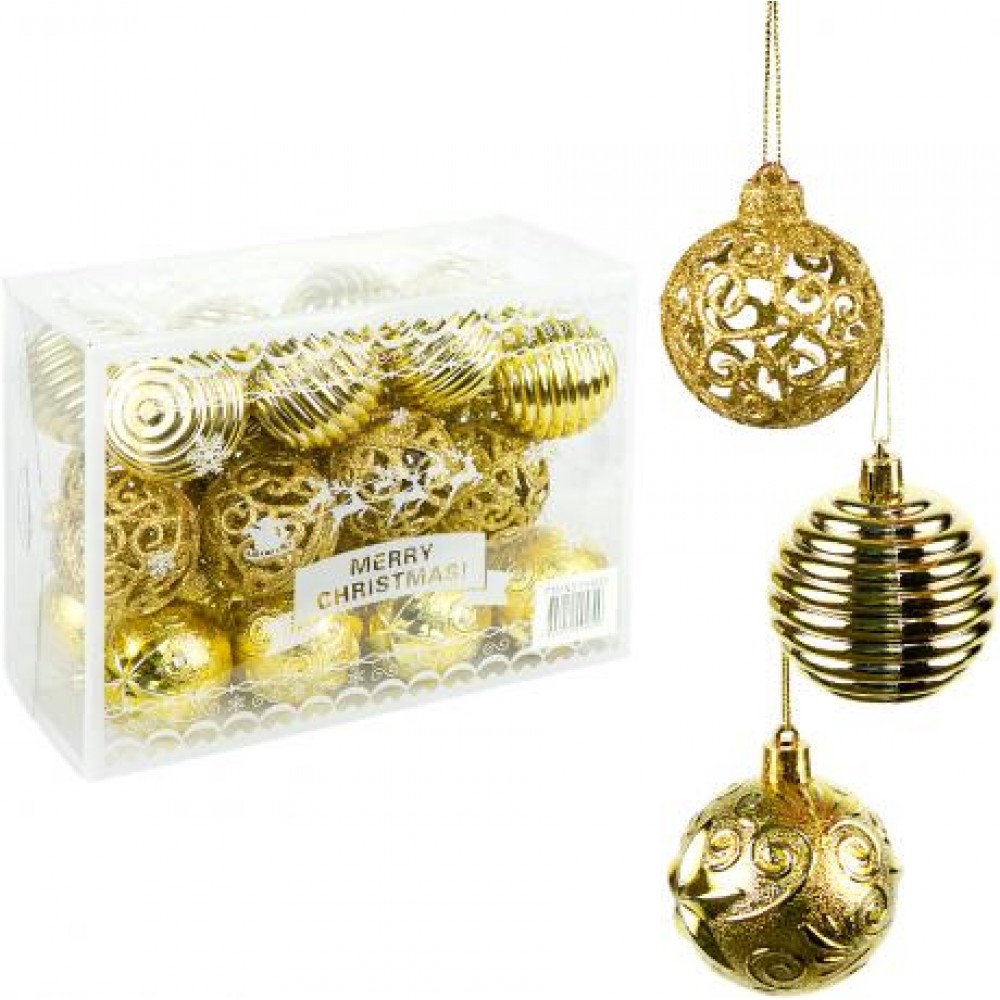 Набір новорічних пластикових куль — стильна прикраса для святкової ялинки. У комплекті 24 кулі діаметром 6 см: 8 ажурних, 8 рельєфних і 8 з декоративним візерунком. Усі кулі виконані в єдиному кольорі з блиском і фактурою, що створює ефект святкового сяйва. Упаковка з ручкою та написом “Merry Christmas!”, розміром 23×11,5×17,5 см — чудовий варіант для подарунка або охайного зберігання.
