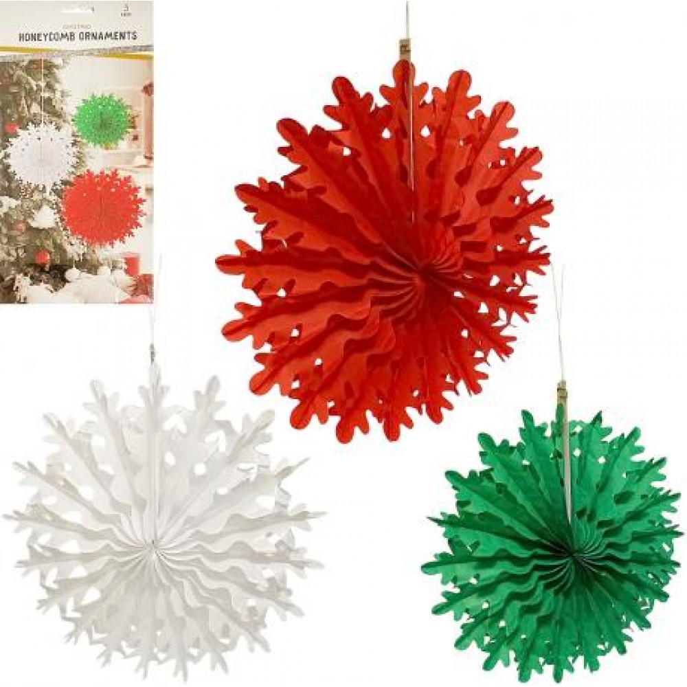 Набір підвісних новорічних прикрас це стильний декор для створення святкової атмосфери. У комплект входять 3 паперові фігурки. Конструкція «стільника» легко розкривається, утворюючи акуратні та легкі прикраси. Їх можна повісити на ялинку, у вікно, на стіну або використовувати для оформлення вітрин. Екологічний матеріал забезпечує безпеку та якість. Відмінний вибір для дому, офісу чи святкового заходу.