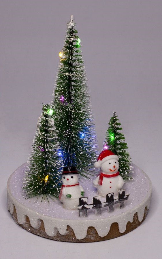 Новогодняя LED декорация 3D фигурки "Снеговики" 14 х 10,5см Разноцветный Unison (0090L)
