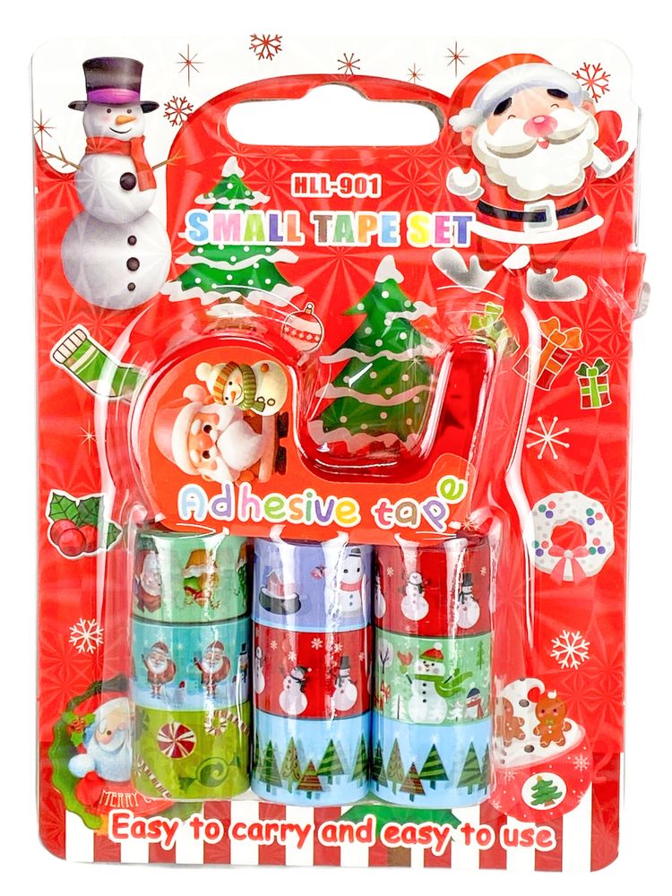 Лента клейкая декоративная 9шт х 1,2 х 250см +диспенсер "Новогодняя" (HLL-901-NY)