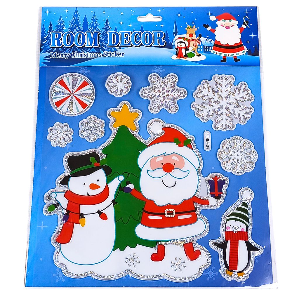 Наклейка декоративная объемная "Санта Клаус,Снеговик" 20,5 х 26см Разноцветный Unison (ST-4428)