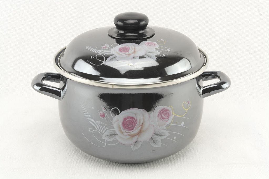 Кастрюля эмалированная выполнена из стали и покрыта тройным слоем эмали. Такая посуда сочетает в себе такие характеристики, как безопасность, универсальность, неприхотливость. Благодаря слою эмали, в пищу не попадают ионы металлов, и не размножаются бактерии. Эмалированные кастрюли экологичны, не впитывают запахи, не меняют вкусовых качеств пищи. Подходят для приготовления первых и вторых блюд, гарниров, соусов и т.д. Кастрюлю можно мыть в посудомоечной машине. Расцветка с яркой цветочной композицией понравится любой хозяйке и украсит интерьер Вашей кухни.