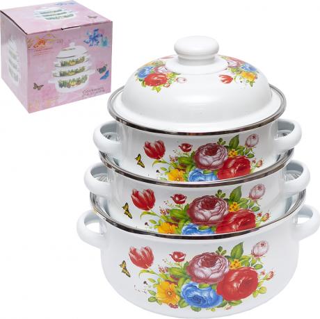 Цілісність товару необхідно перевіряти поштою. Емальований посуд не затримує хвороботворних мікробів та бактерій. Стильний та яскравий набір прикрасить будь-яку кухню. Кришка (3шт) також емільована. Об'єм 1,1л/1,6л/2,3л , діаметр каструлі 16см/18см/20 см.