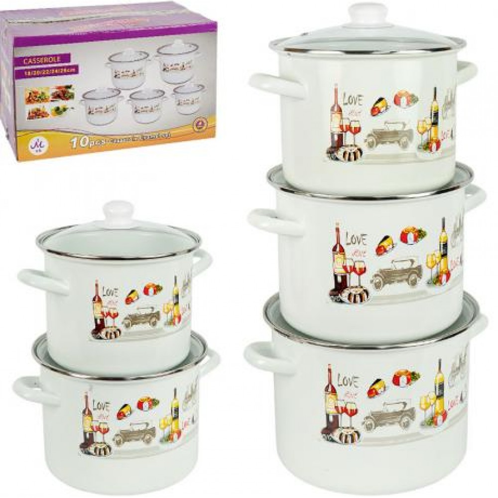 Набір емальованих каструль Casserole, 10 предметів (2 л, 4 л, 5 л, 6 л, 9 л) — практичний та зручний комплект посуду для вашої кухні. Каструлі виготовлені з міцного металу з емальованим покриттям, яке стійке до корозії, не вбирає запахи та легко миється.
