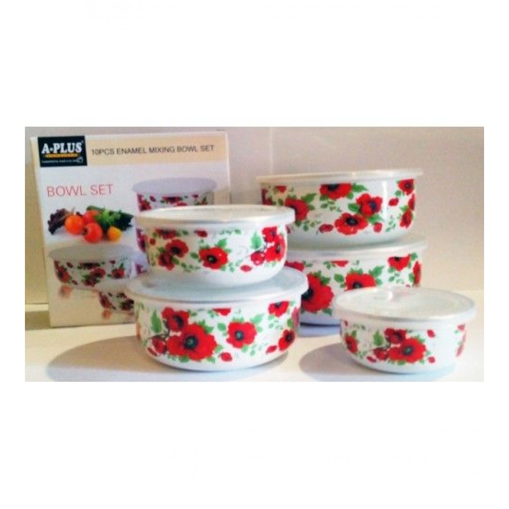 Набор судочков эмалированных (5 шт.) с пластиковыми крышками.