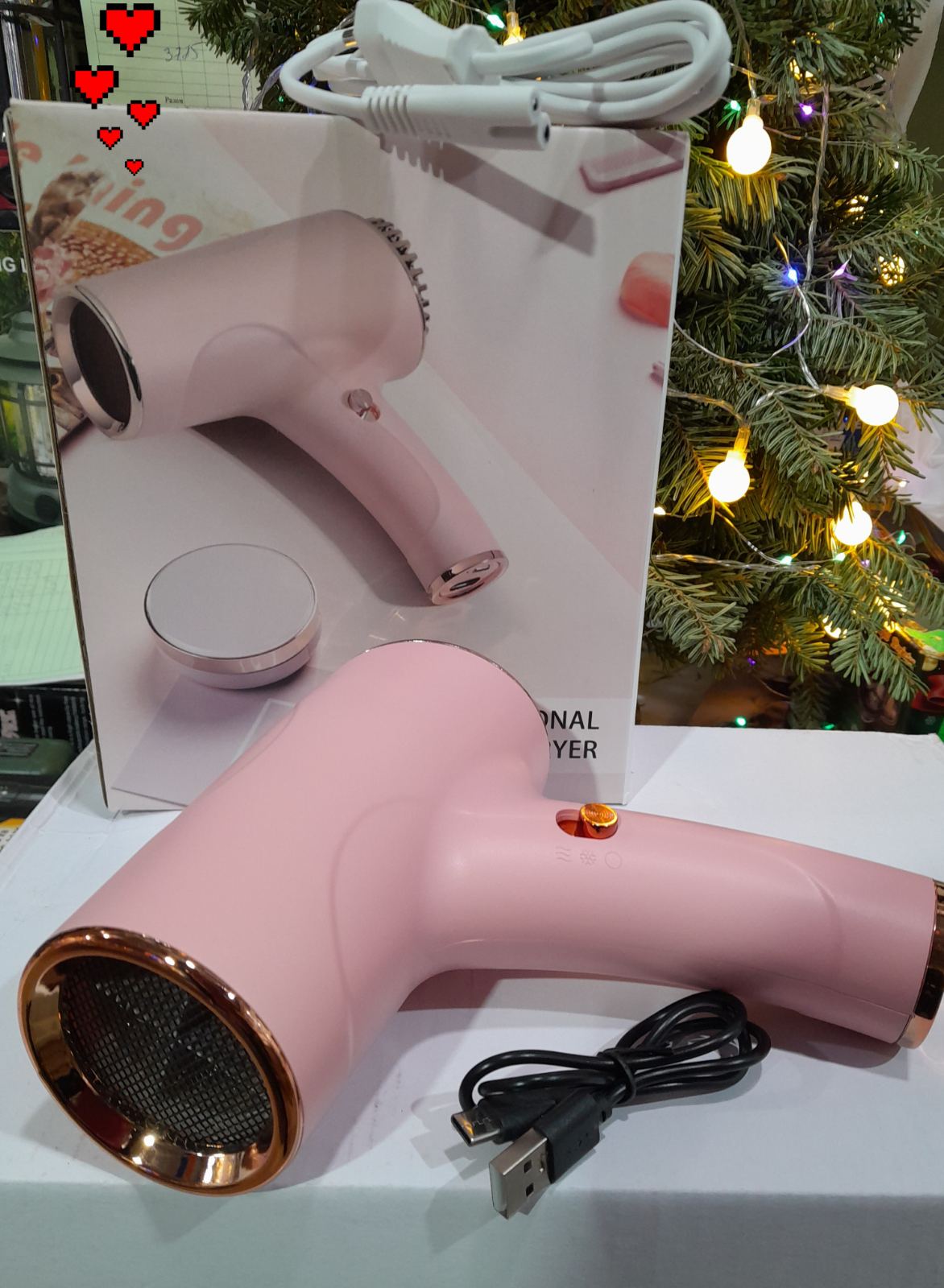 Фен для волос беспроводной (с холодным воздухом от аккумулятора и теплым от сети)