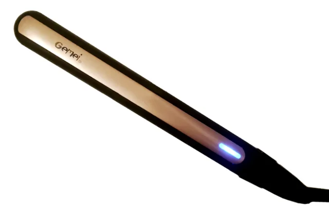 Плойка-гофре для волос Gemei - гладкие блестящие пластины, антискользящий материал корпуса, световой индикатор, удобный вращающийся шнур длиной 1,5 метра.