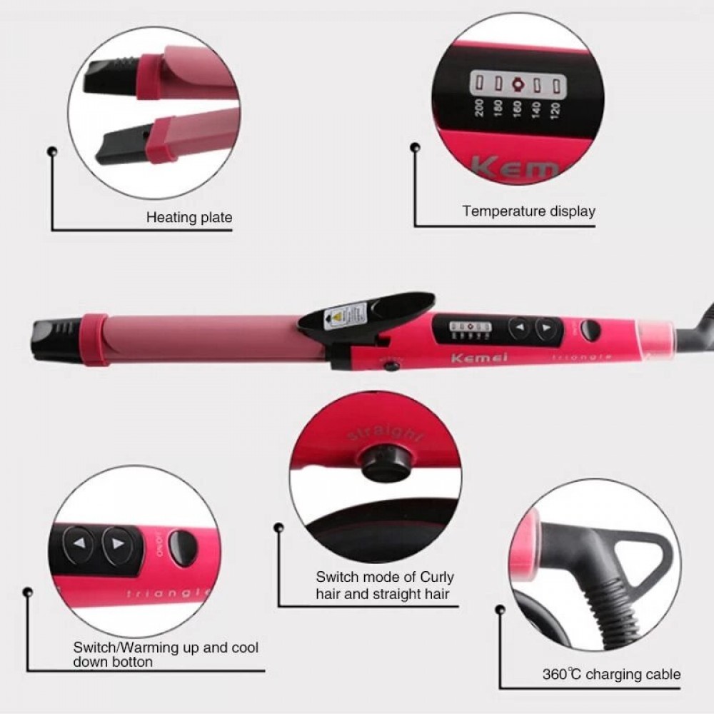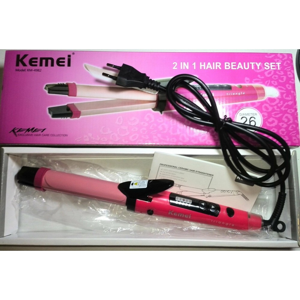 Многофункциональный выпрямитель (утюжок) - плойка для волос Kemei KM-4982 (2 в 1), диаметр локона 26 мм. Регулируемый термостат: 120, 140, 160, 180, 200 С. Дисплей с подсветкой, индикатор работы. Мощность 45W. Кнопка вкл/выкл. Вращение шнура на 360 градусов. Быстрый нагрев. Петелька для подвешивания. Порадует Вас шикарными и роскошными локонами. Высокое качество, стильный и эргономичный дизайн. Фирменный вкладыш, подарочная упаковка