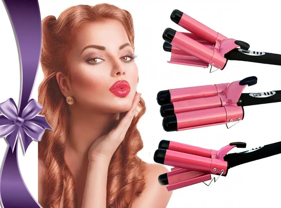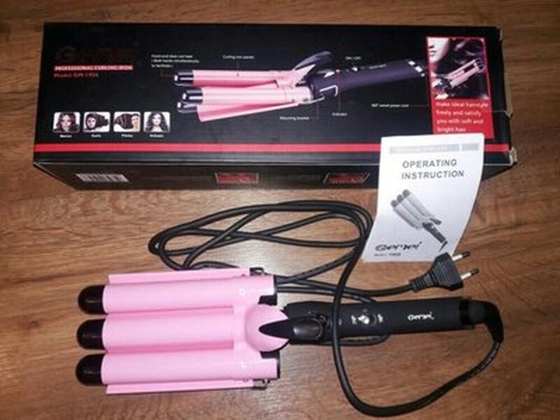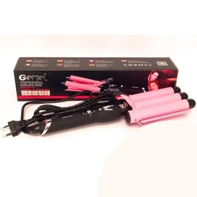 Плойка тройная Gemei GM 1956 на 3 три волена для завивки волос входа за волосами щипцы тройная