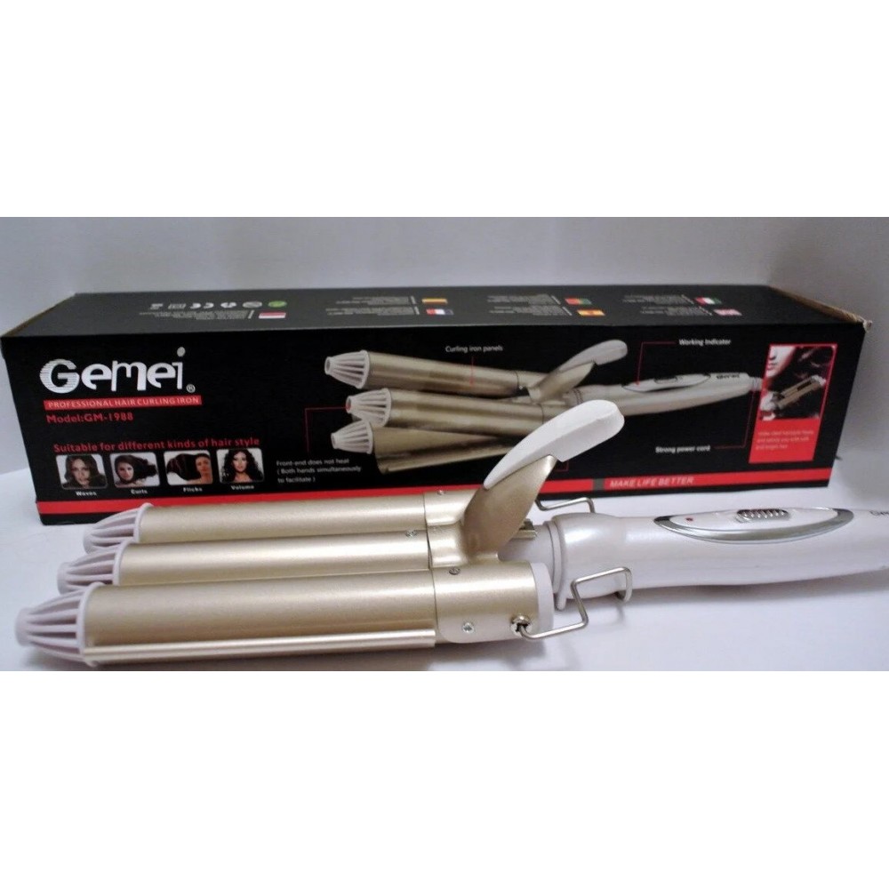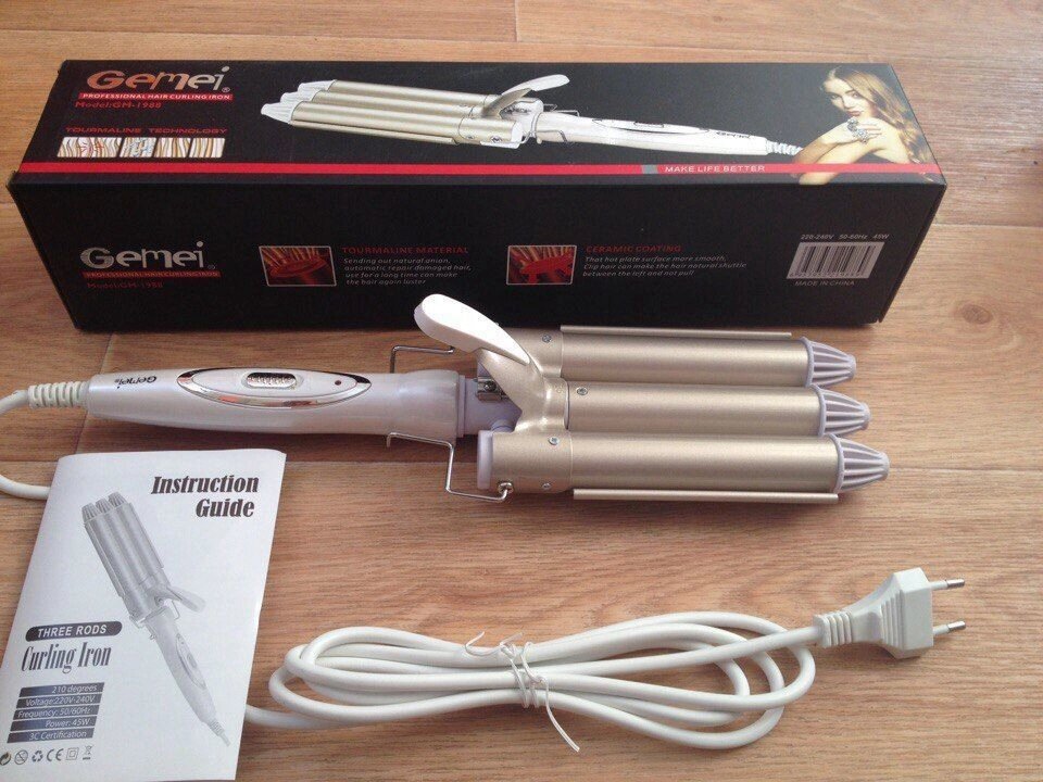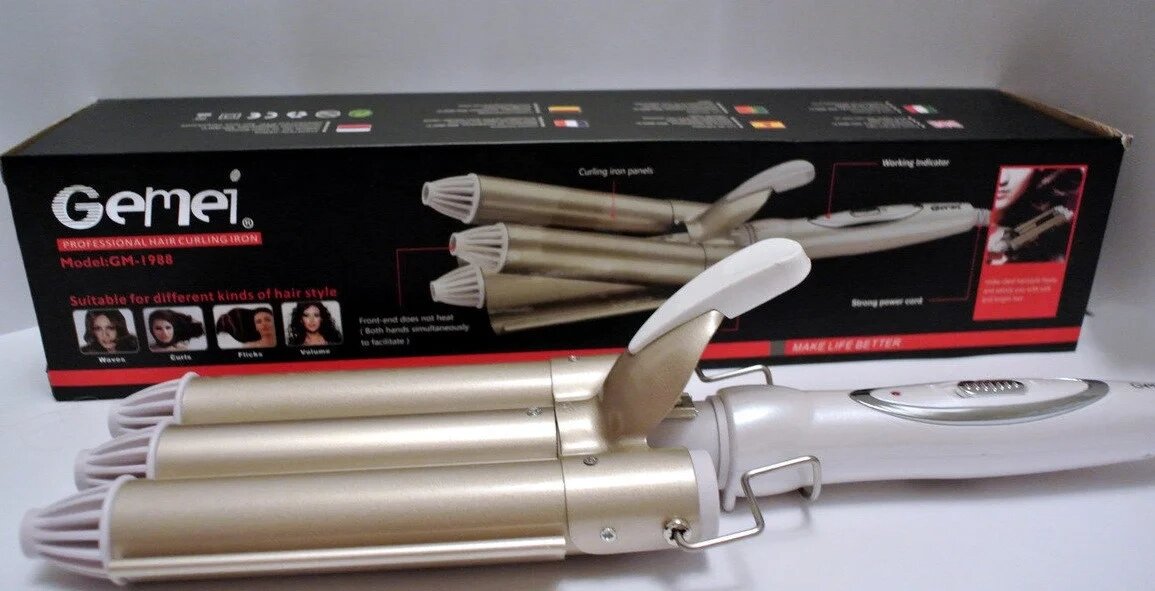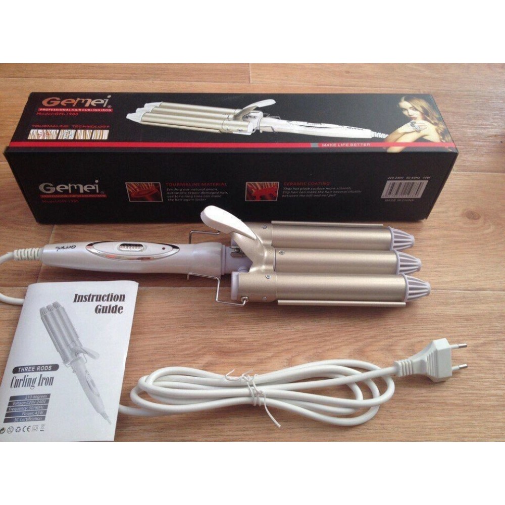 Плойка тройная Gemei GM 1988 на 3 три волена для завивки волос входа за волосами щипцы тройная