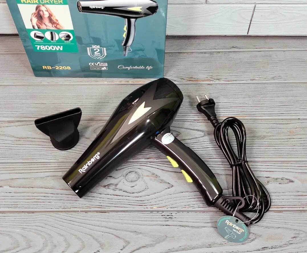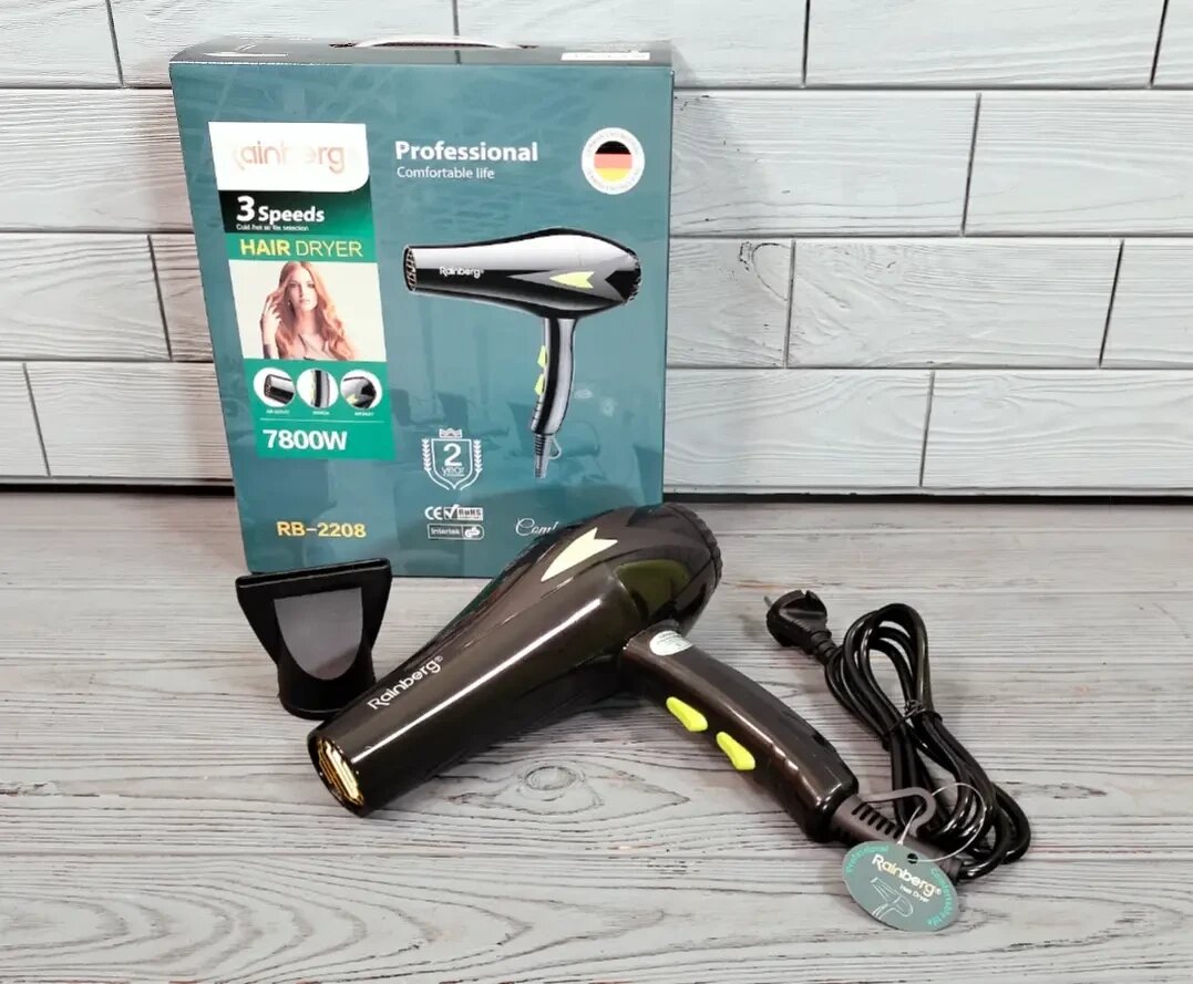 Профессиональный фен для волос Rainberg RB-2208 7800W / Мощный фен для волос