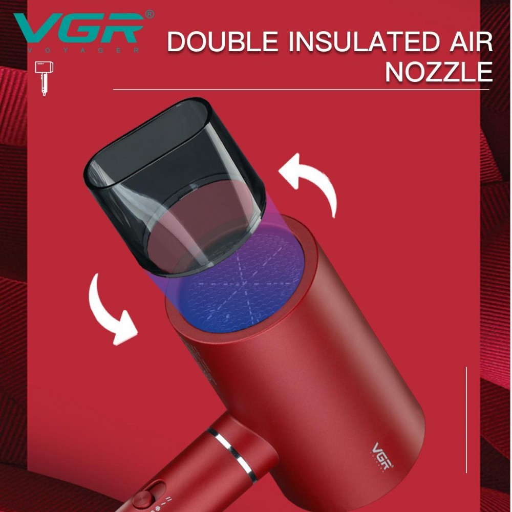 Фен профессиональный VGR V-431 RED, 2 уровня обдува, 2 уровня температуры, насадка-концентратор