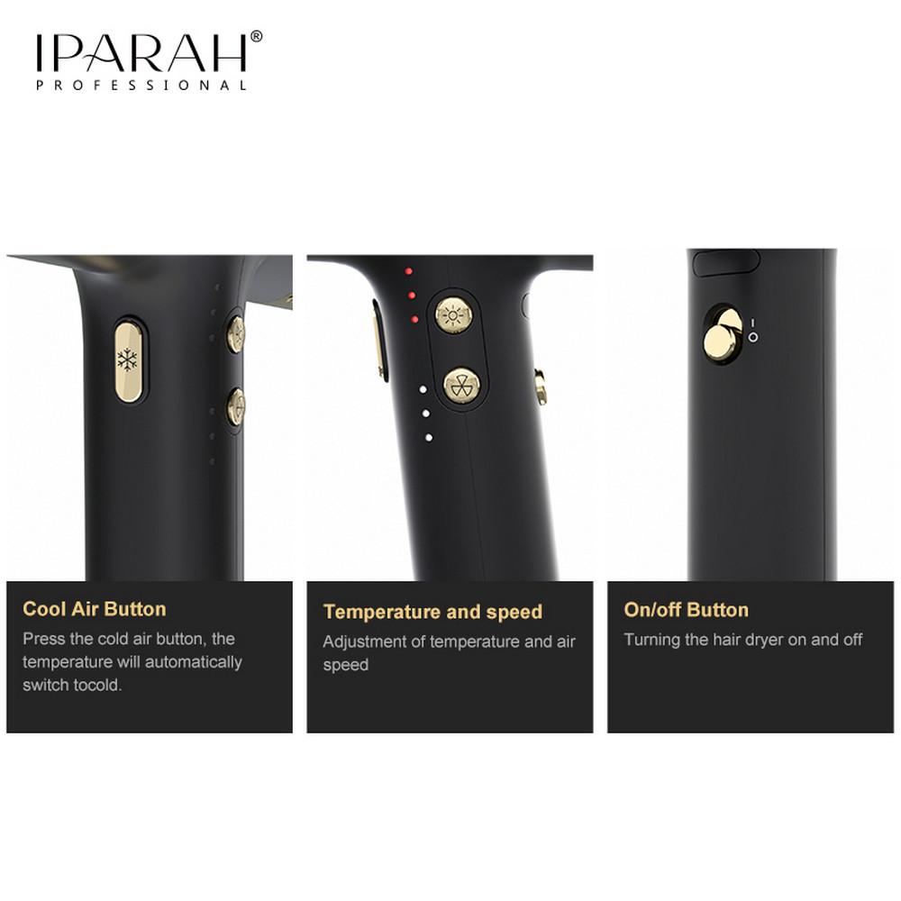 Профессиональный фен IPARAH P-390G BLACK, 4 уровня обдува, 4 уровня температуры, 110000RPM, 1500-1700W