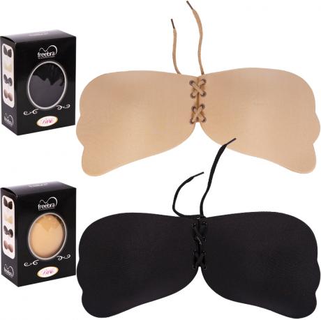 Силиконовий бюстгальтер без бретелей розміру C підходить для різних форм грудей. Шнурівка між чашечками дозволяє регулювати форму грудей. Бюстгальтер виготовлений з м'якого матеріалу, легко миється та багаторазового використання. Розмір упаковки 12х17х7 см.