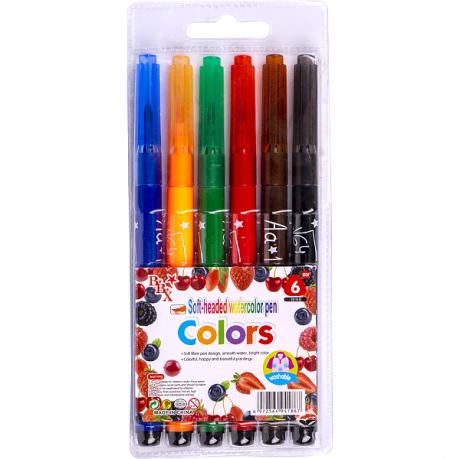 Фломастер - пензлик "Colors" 6 кольорів. Вузол в формі пензлика дозволяє наносити лінії від 1 мм до 4 мм. Чорнило на водній основі. Оснащені вентильованим ковпачком. Розмір упаковки 17 * 7 * 1,3см Вік 3+